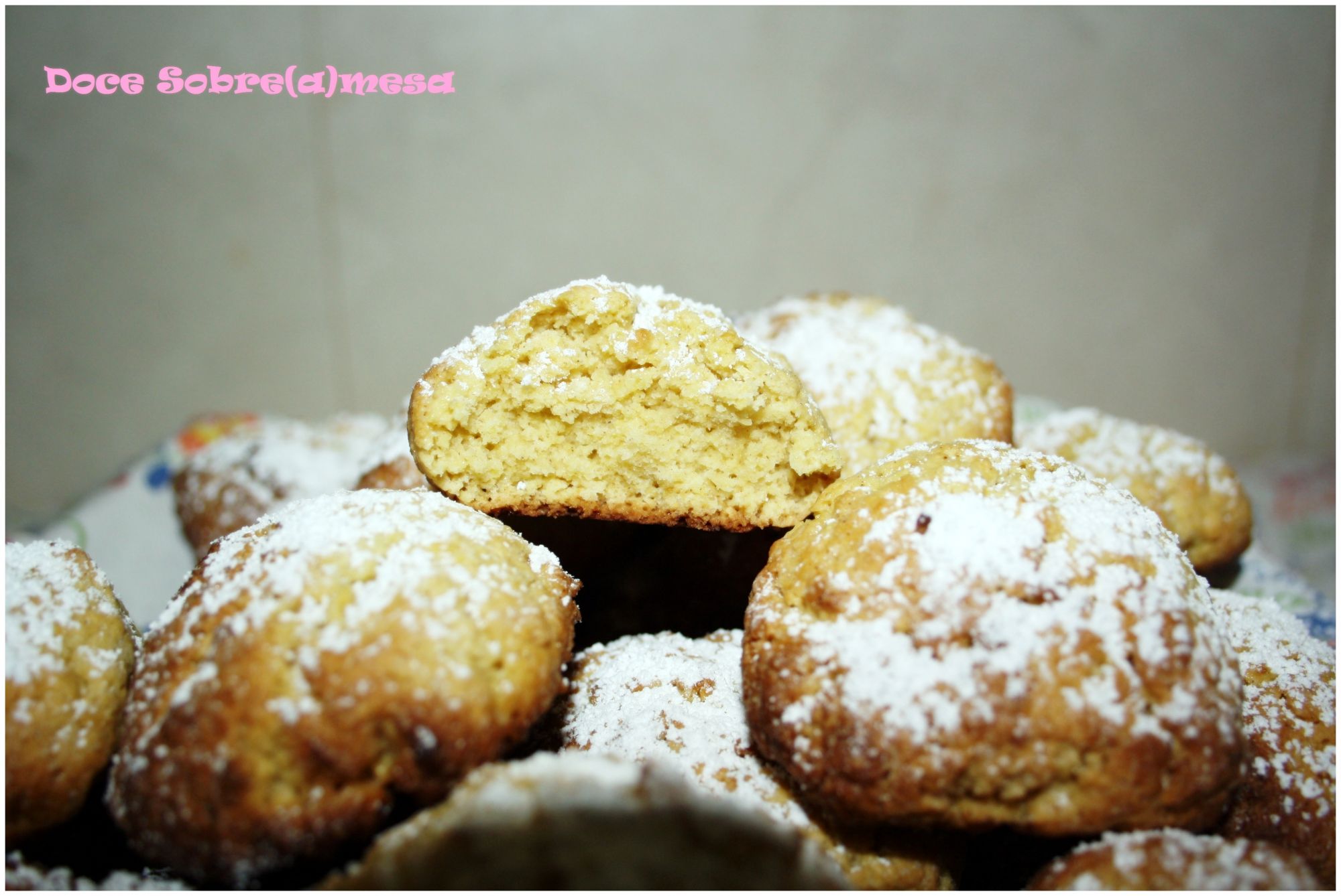 Molde pequenas bolinhas de massa, coloque-as no tabuleiro, bem separadas umas das outras, e leve ao forno por, aproximadamente, 20 minutos. Retire, deixe arrefecer e polvilhe com açúcar em pó.
