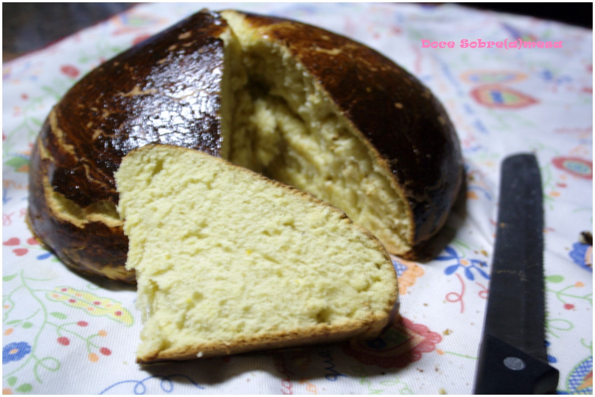 Passado esse tempo, coloque a massa em cima da bancada/mesa polvilhada com um pouco de farinha e amasse mais um pouco. Faça uma bola (mais para o achatada, que cresce bastante!) e pincele com uma gema.