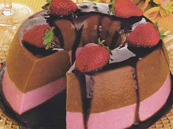 Despeje a parte de chocolate sobre a de morango e leve a geladeira por 30 min , ou até ficar firme.