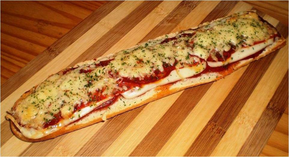 Passe o molho de tomate nos pães, acrescente o presunto e a mussarela;