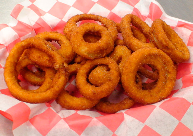 Descasque e corte as cebolas com pelo menos 1 cm de largura e separe os anéis com cuidado para não quebrar.