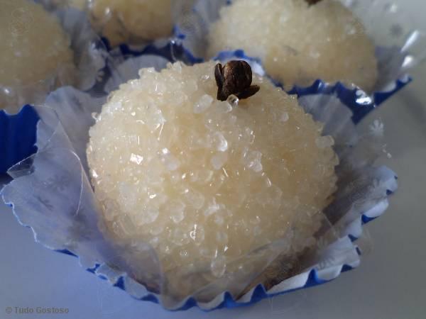 Faça bolinhas, passe pelo açúcar cristal ou coco ralado