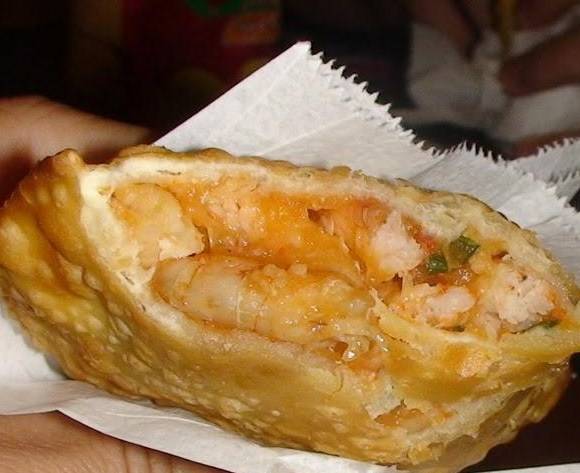 Aqueça a panela, coloque o azeite e o azeite de dendê, acrescente a cebola e frite até dourar. Acrescente o tomate, o camarão e refogue por 3 minutos ou até que o camarão fique rosado e o tomate quase desmanche, criando um molho na panela. Coloque, aos pouco, o purê e o leite de coco, mexendo sempre e deixe mais um pouco no fogo até dar uma encorpada. Desligue o fogo, acrescente o azeite de dendê e a salsinha. Deixe esfriar. O recheio deve ficar firme e consistente para rechear o pastel. Se necessário, acrescente mais purê de mandioca. Monte os pastéis e frite em óleo quente por imersão. Escorra em papel absorvente.