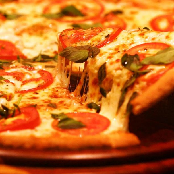 Recheios a gosto: mussarela, presunto, calabresa, tomate, cebola, ovos, sardinha e orégano, bacon, pimentão picado, ervilha, milho e orégano, frango coberto com catupiry, batata palha, palmito, queijo provolone e prato, atum.