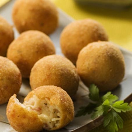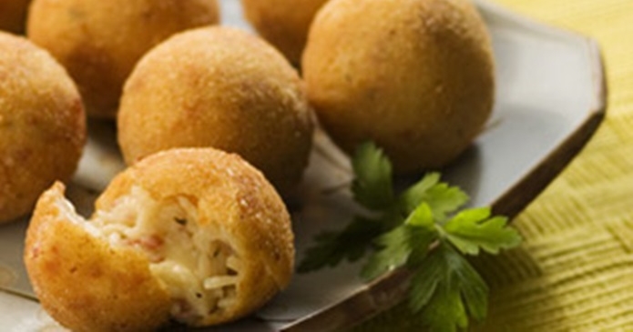 - Faça bolinhos, recheie com mussarela e passe pela clara e pela farinha de rosca