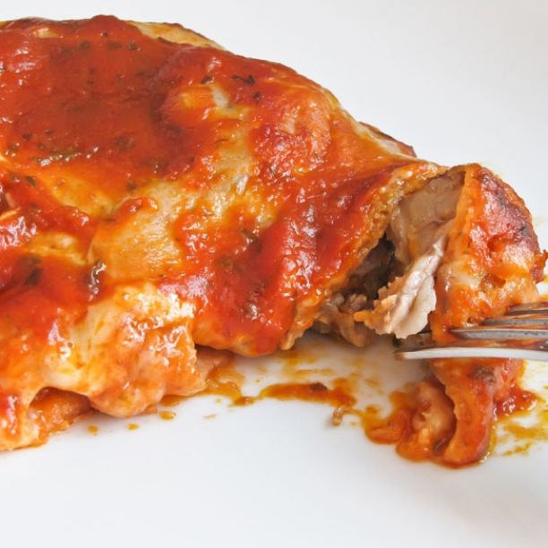 Retire do forno e coloque molho na assadeira, bife, tomates picados, presunto e queijo. Finalize com molho e queijo ralado. Leve novamente ao forno por 10 minutos ou até que derreta o queijo. Esta pronto.