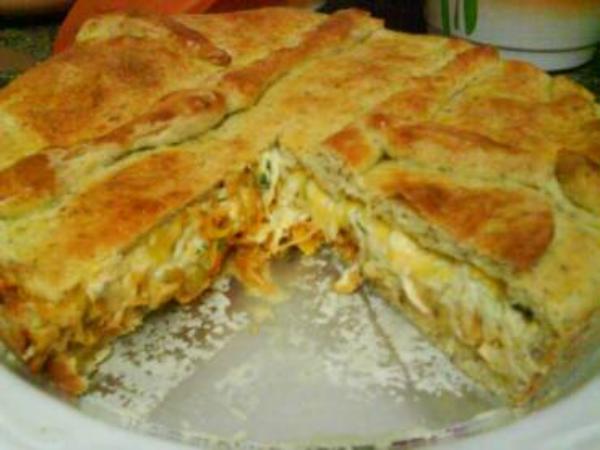 Abra a outra metade da massa, cubra a torta e faça tirinhas com a massa para enfeitar (se preferir)