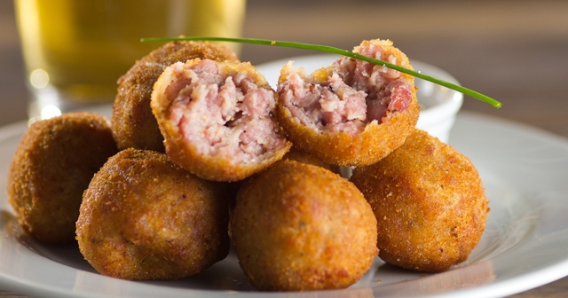 Desencape as linguiças e faça pequenos bolinhos, depois passe os bolinhos no ovo batido e na farinha de trigo,faça isso 2 vezes.