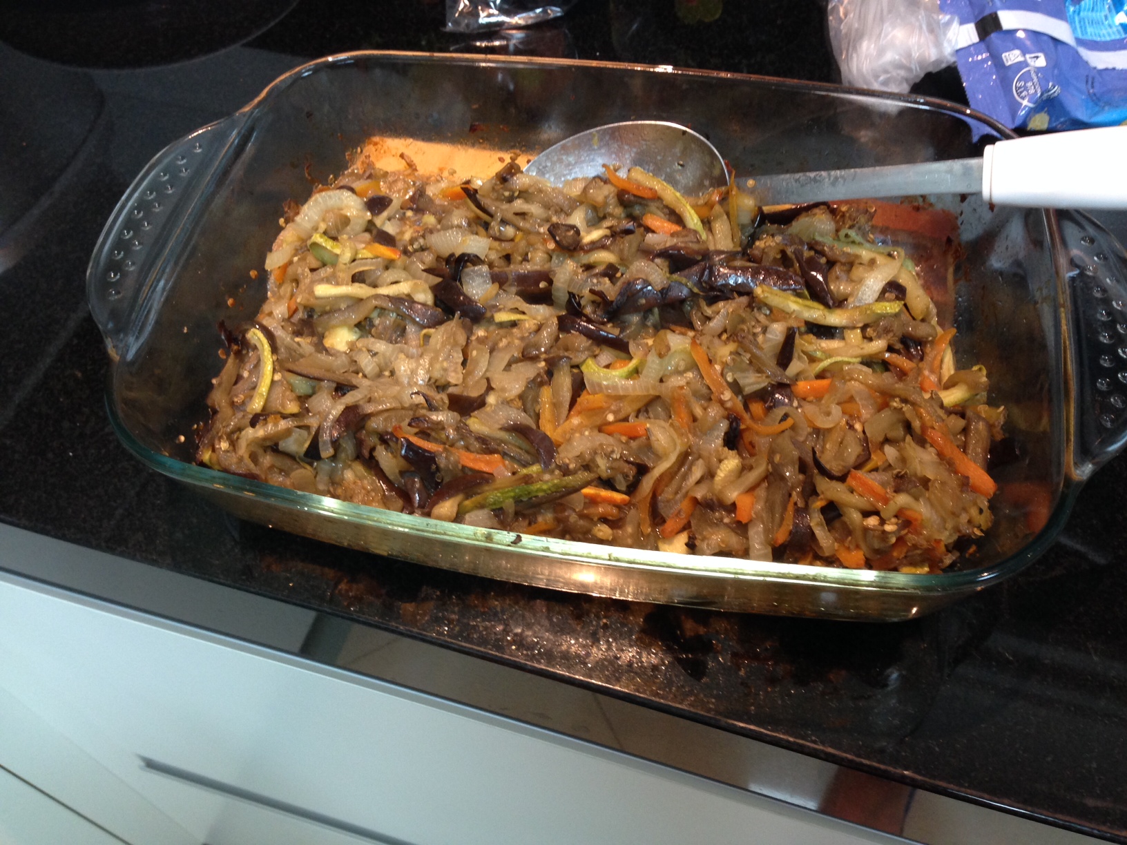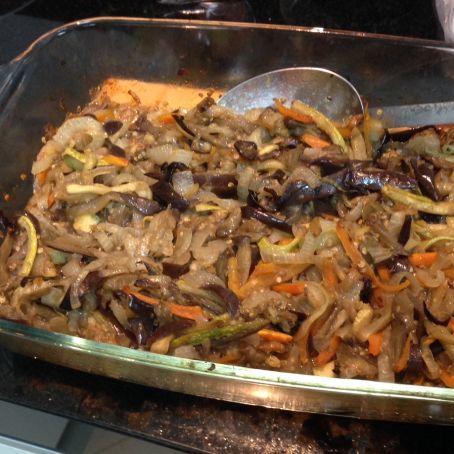 Misture e leve ao forno médio (200° C) por aproximadamente 1 hora ou até que os legumes estejam cozidos.