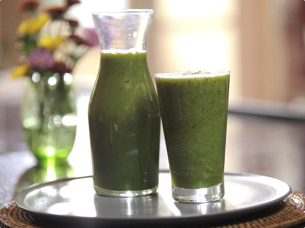 Junte todos os ingredientes em um liquidificador e bata até o suco ficar homogêneo. Tomado sem coar ou peneirar. É uma rica fonte de fibra, porém pode ser coado sem problema.