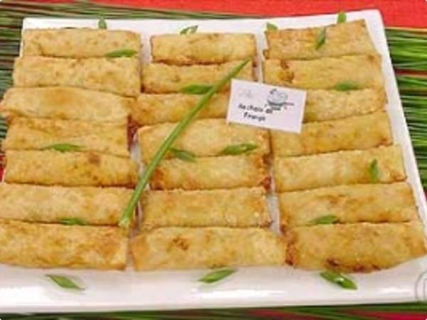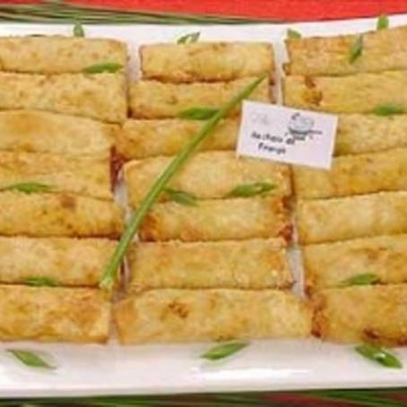 Recheie a massa reservada (1 colher de sopa de recheio), enrole duas vezes e dobre as laterais selando com clara de ovo.