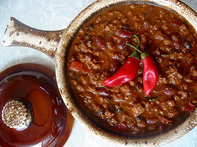 Cozinhe o feijão normalmente na panela de pressão,em outra panela grande coloque o azeite e frite a cebola e o alho, em seguida coloque a carne moida,refogue ela bem. Depois da carne refogada coloque o restante dos ingredientes, o feijão com o caldo,o molho pronto,os pimentões ea pimenta. E deixe ferver por uns des minutos ou até engrossar o caldo.