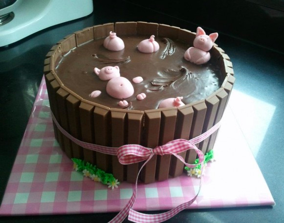 Cubra o bolo com a ganache reservada e o que sobrar deverá ser jogado sobre o bolo já pronto, com o kit kat