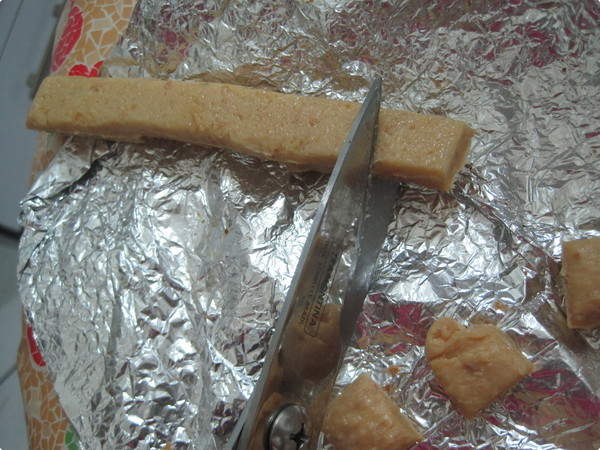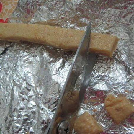 Despeje no mármore untado e depois de frio corte em pedacinhos.