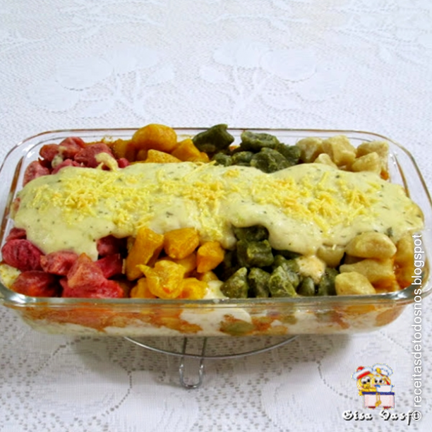Polvilhe queijo ralado e leve para gratinar por 40'.