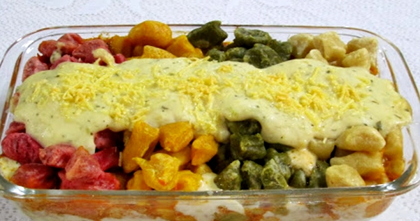 Em cada adição de vegetal acrescente entre 3/4 de xícara a 1 xícara de farinha de trigo porque a umidade do purê de legumes irá tirar o ponto ideal da massa.