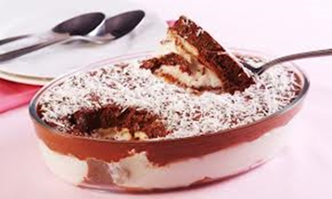 Faça camadas alternadas de bolo regado com guaraná, beijinho e ganache de chocolate, finalize com o chocolate e decore com coco ralado e raspas de chocolate.
