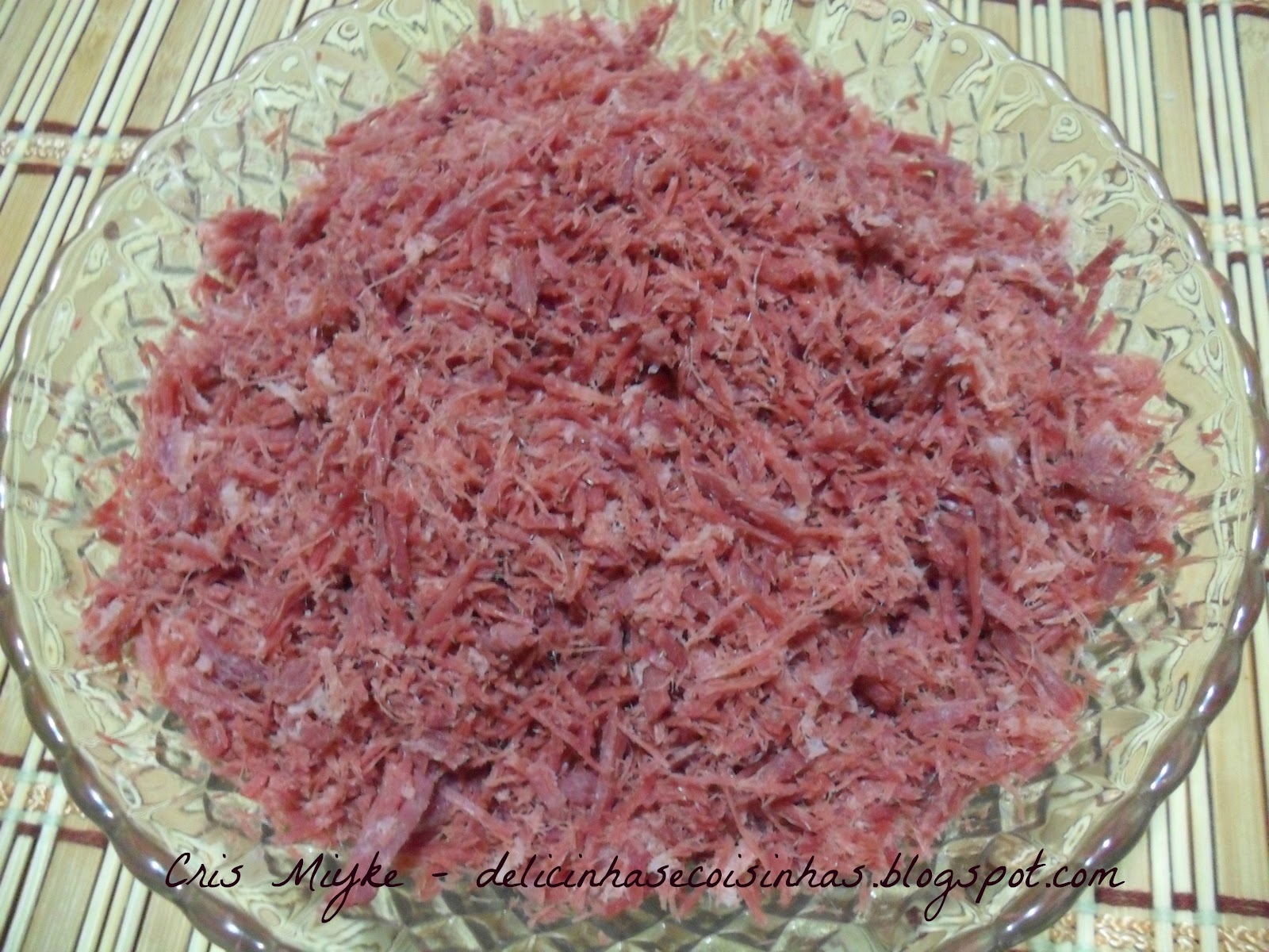 pegue a carne e bata ligeiramente no liquidificador durante 3 segundos (ela ficara desfiadinha ! super facil )