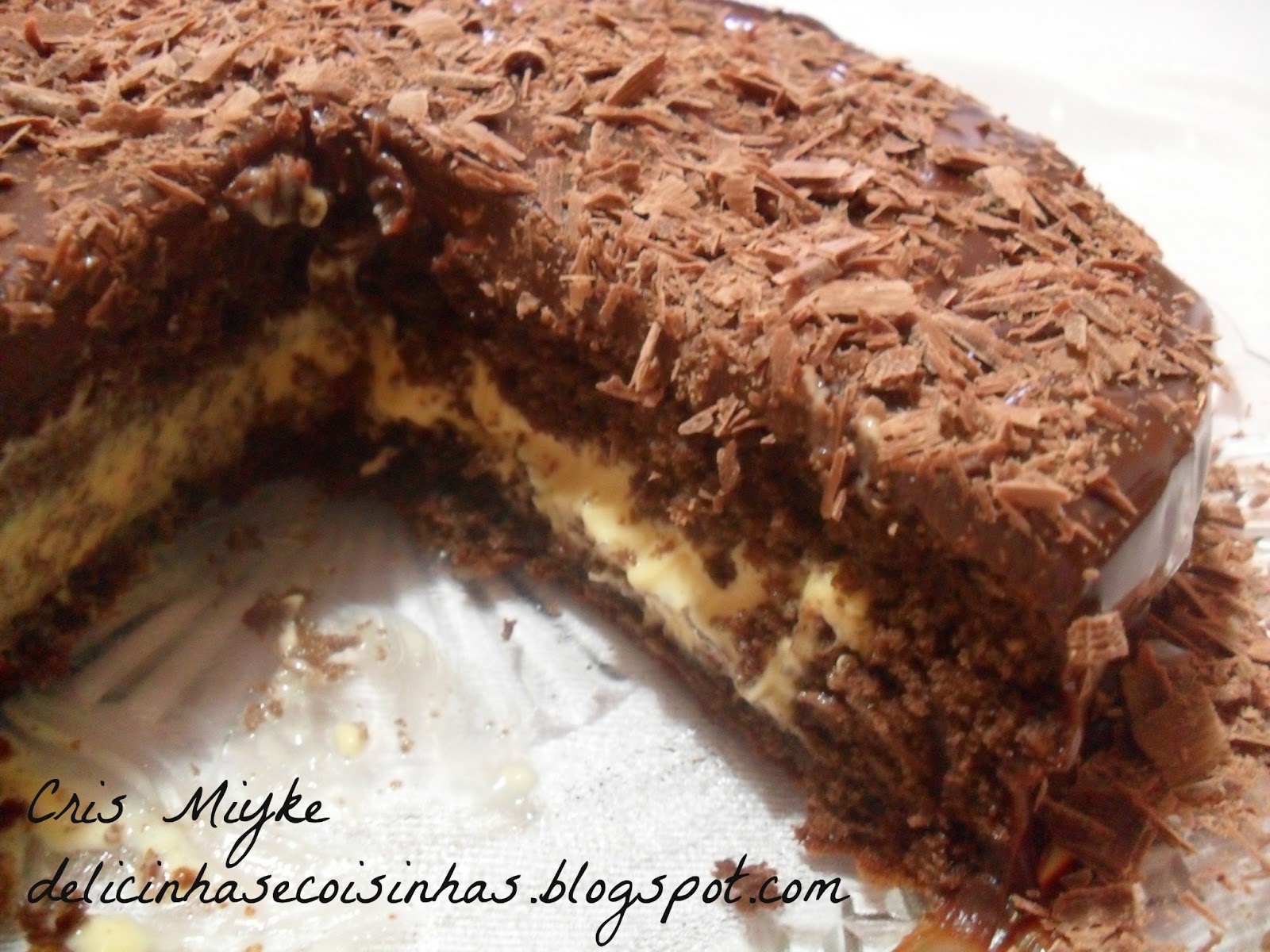 16. Coloque o terceiro disco e cubra com o restante do creme de chocolate. Sirva o bolo gelado.