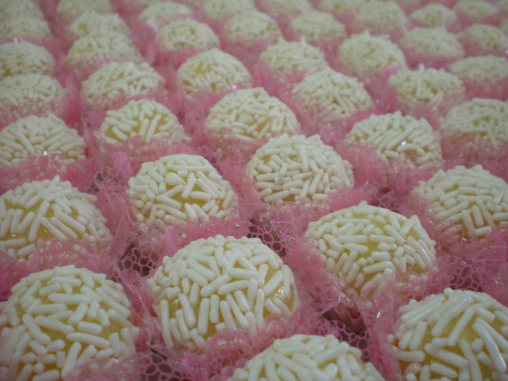 Em uma panela,jogue o leite condensado,o chocolate branco,a manteiga,o suco de um limao e as raspas do limao.Misture tudo até desprender da panela.Deixe esfriar e faça bolinhas e passe no açucar refinado.