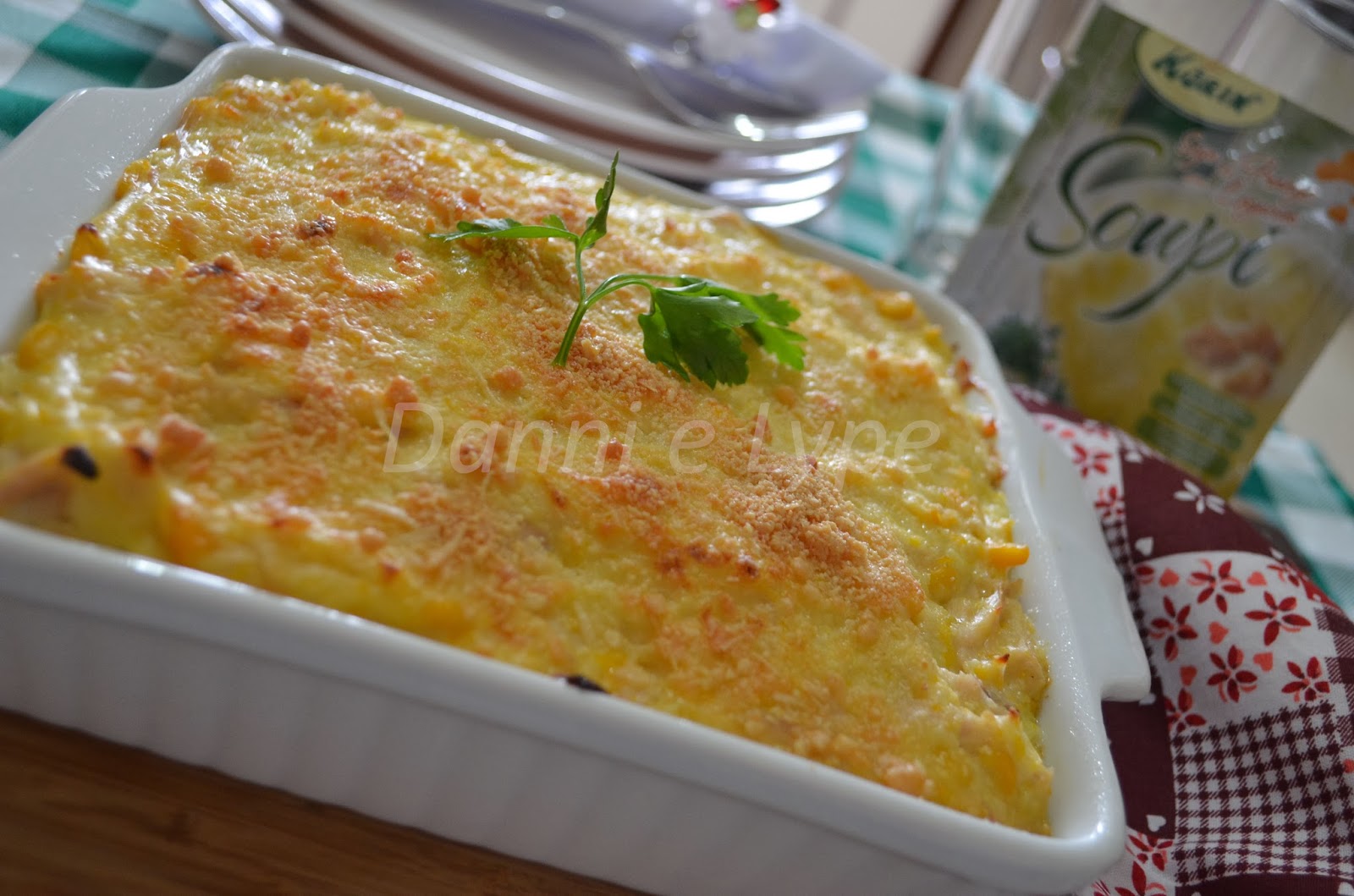Coloque a mistura num refratário cubra com queijo muzzarela e coloque a batata palha. Leve ao forno pré-aquecido 180 ° até gratinar. Sirva quente com arroz branco.
