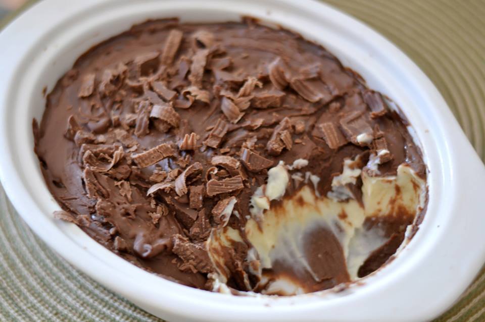Coloque em um refratório a metade deste creme de chocolate e leve ao congelador por 20 minutos