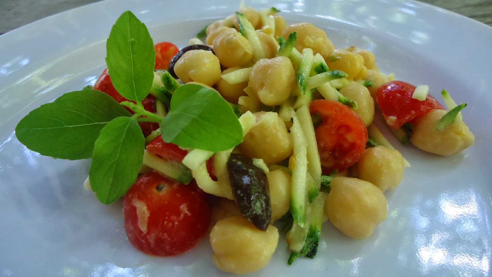 Salada de grão-de-bico com abobrinha ao molho de tahine