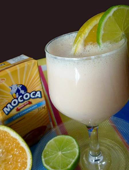 Esprema a laranja e o limão, bata no liquidificador juntamente com os outros ingredientes.