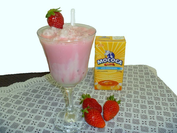 Bata no liquidificador a groselha e o leite condensado Mococa.