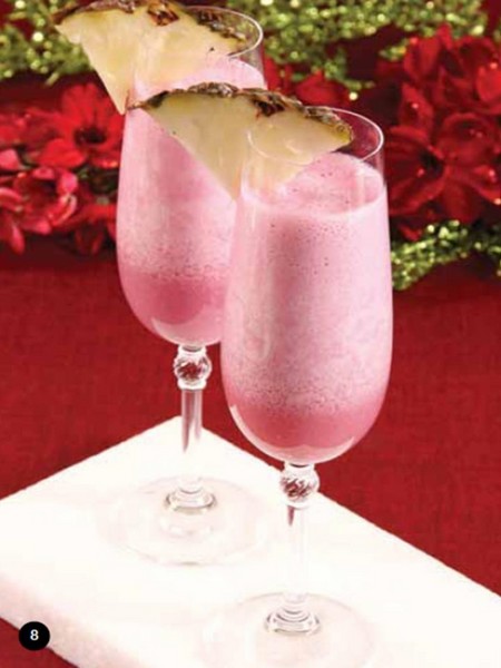 Em um liquidificador coloque abacaxi, o vodka e o leite condensado. Bata até ficar uma mistura homogênea. Em um copo alto, coloque 3 dedos de xarope de groselha, gelo e por último, a batida do liquidificador. Salpique com a canela e sirva imediatamente.