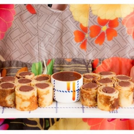 Enrolar os tubos de mousse com os crepes e cortar fazendo os sushis.