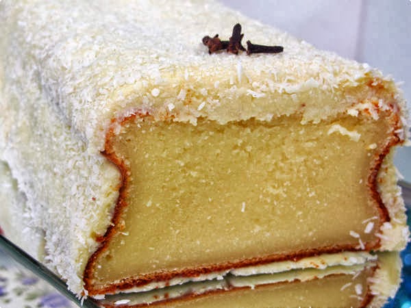 Bolo: Em um liquidificador coloque 1 lata de leite condensado, 1 lata de leite, 1 lata de leite de coco, 3 ovos, 1 lata de farinha de trigo, ½ lata de açúcar, 3 colheres (sopa) de margarina e 1 ¼ xícara (chá) de coco ralado seco e bata bem até formar uma mistura homogênea, leve ao forno (pré-aquecido 180°C) em uma forma untada e enfarinhada por 1 hora ou até dourar. deixe esfriar e desenforme.