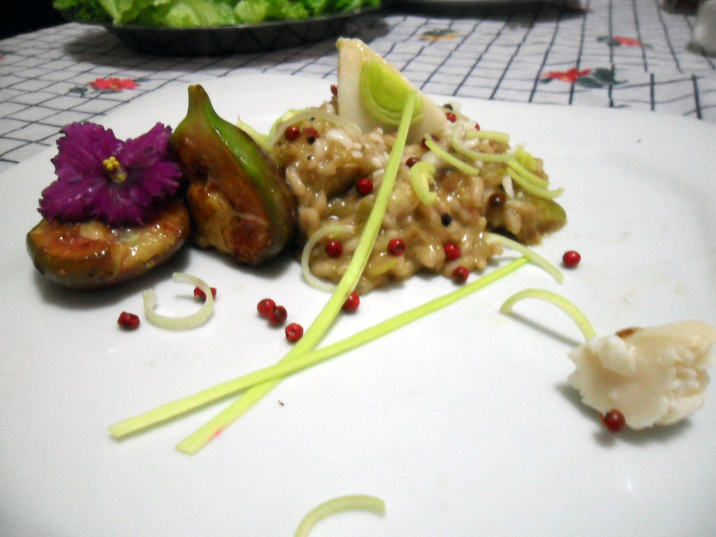 Acrescente o vinho e os figos, refogue em fogo baixo até ficar com a textura cremosa e o arroz estar cozido mas ainda durinho, se for necessário adicione mais caldo.