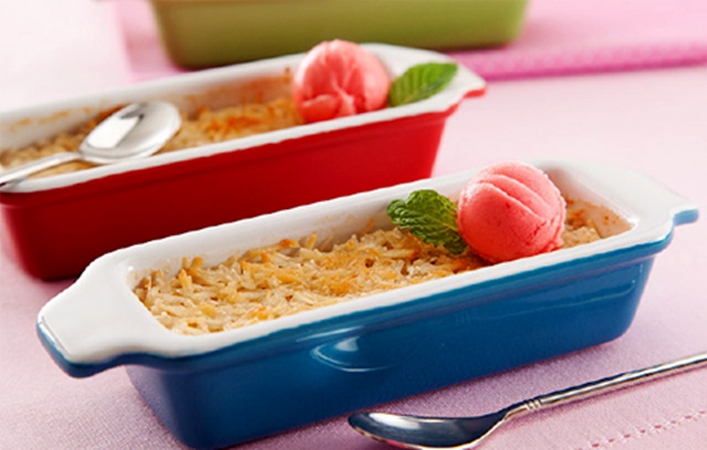 - Distribua em 12 refratários pequenos e individuais (4 cm x 12 cm x 2 cm de altura);