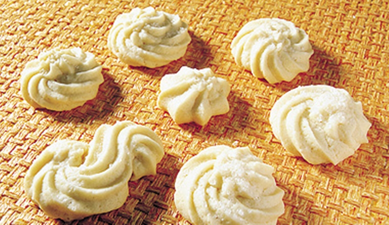 - Coloque a massa em um saco de confeitar e, com o bico pitanga, faça pequenos biscoitos em uma assadeira anti-aderente ou em uma assadeira, untada com manteiga e forrada com papel-manteiga;
