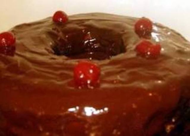 Montagem: Espalhe 1/3 do creme de chocolate sobre um dos bolos. Por cima, ponha o outro bolo. Cubra com o restante do creme. Sirva em temperatura ambiente com cerejas.