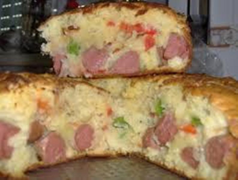 Unte o tabuleiro com manteiga e farinha de trigo, despeje a metade da massa e coloque o recheio. Em seguida adicione o restante da massa.