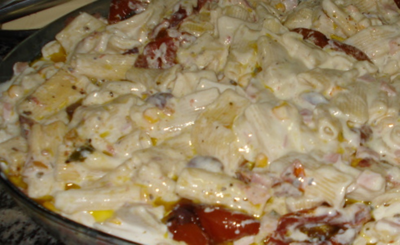 Misture o macarrão com o creme no refratário