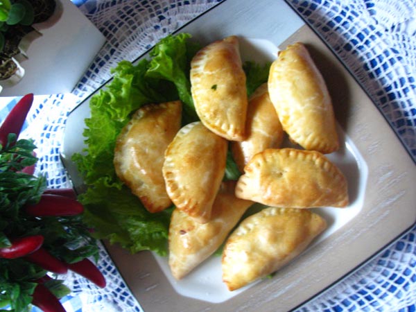 . Para diferenciar os sabores, acrescente gergelim por cima dos pastéis recheados com frango.