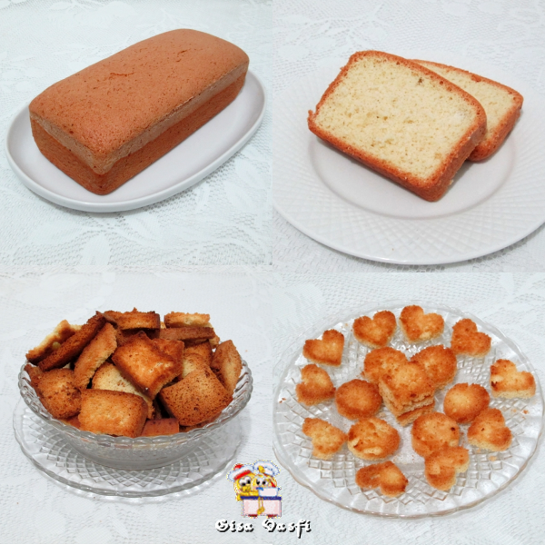 Para fazer os biscoitinhos basta fatiar o bolo/pão de ló em fatias bem fininhas.