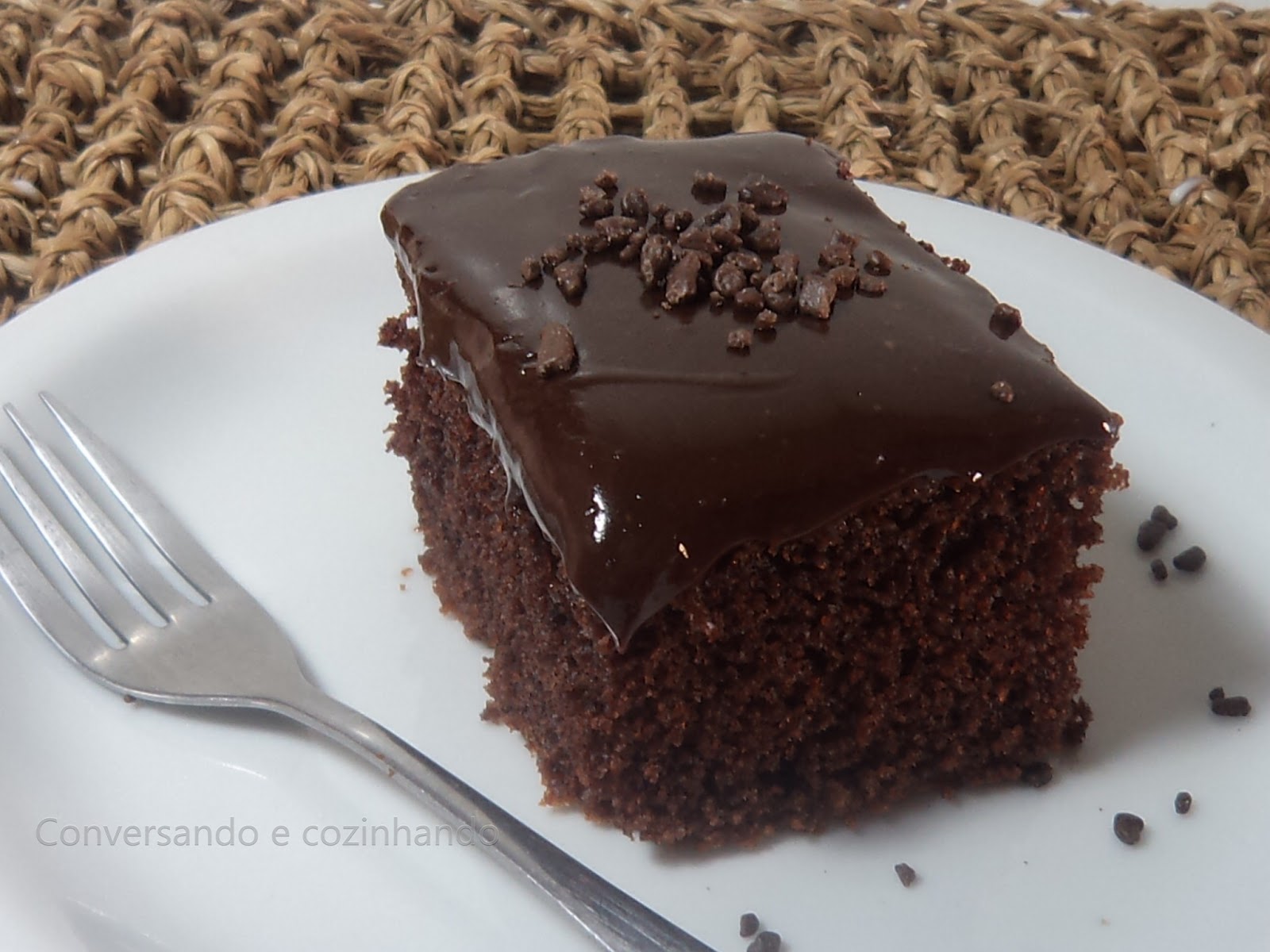 Bata os ovos com o açúcar, óleo, achocolatado e farinha, depois adicione a água quente e por último o fermento em pó