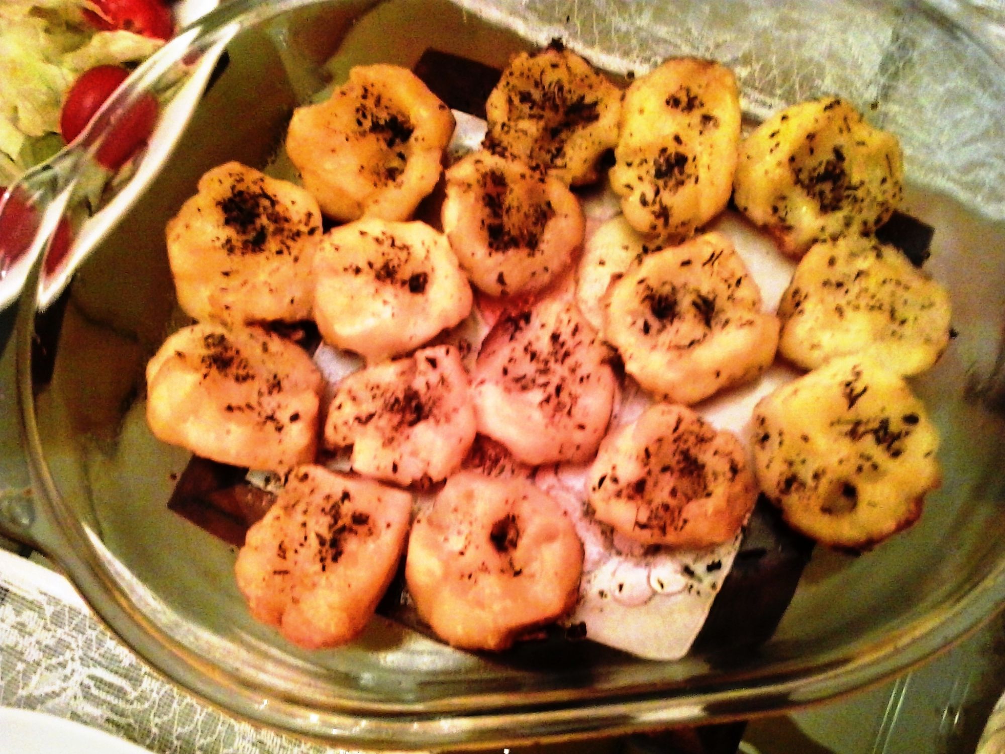 Regue com mais azeite e leve ao forno pré-aquecido, até que fiquem ligeiramente douradas e crocantes.