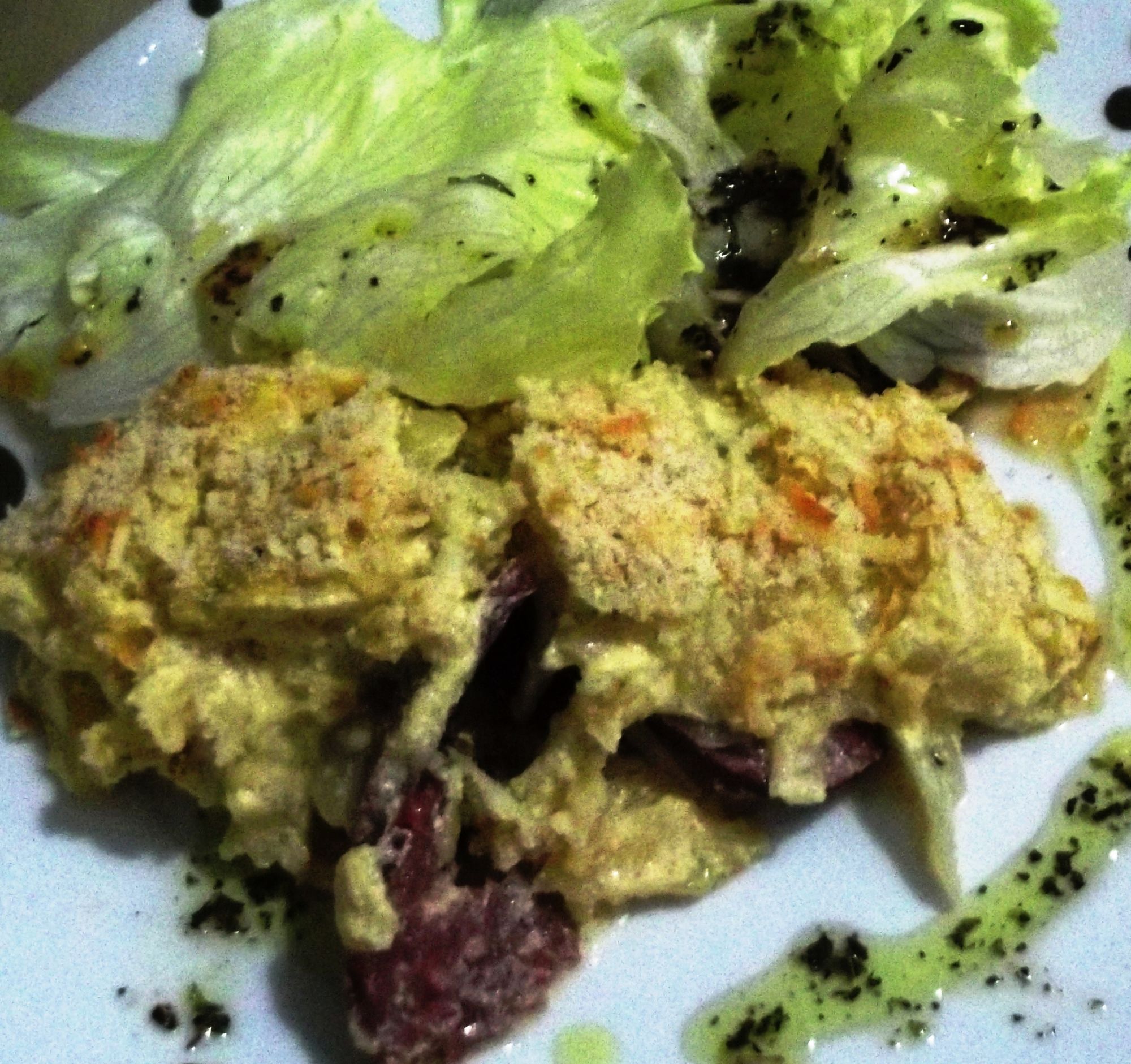 batata, creme de leite, leite, salame tipo Italiano, cebola, farinha de rosca, parmesão ralado, batata gratinada, salame