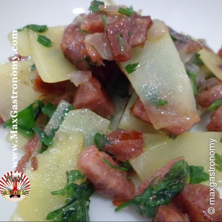 Agregar as linguiças refogadas, deixar refogando por mais uns 3 minutos. Servir quente.