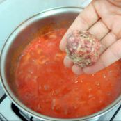 Coloque as bolinhas de carne na panela do molho e deixe cozinhar por 10 minutos