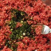 Em uma vasilha coloque a carne moída crua com a cebola, o alho, o pimentão, o sal, a pimenta do reino, o cheiro verde e a farinha de rosca