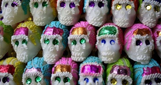 Essas caveirinhas de açúcar são típicas do Dia dos Mortos, o halloween mexicano.