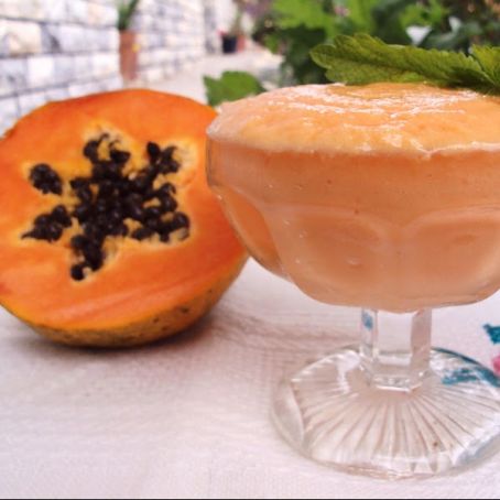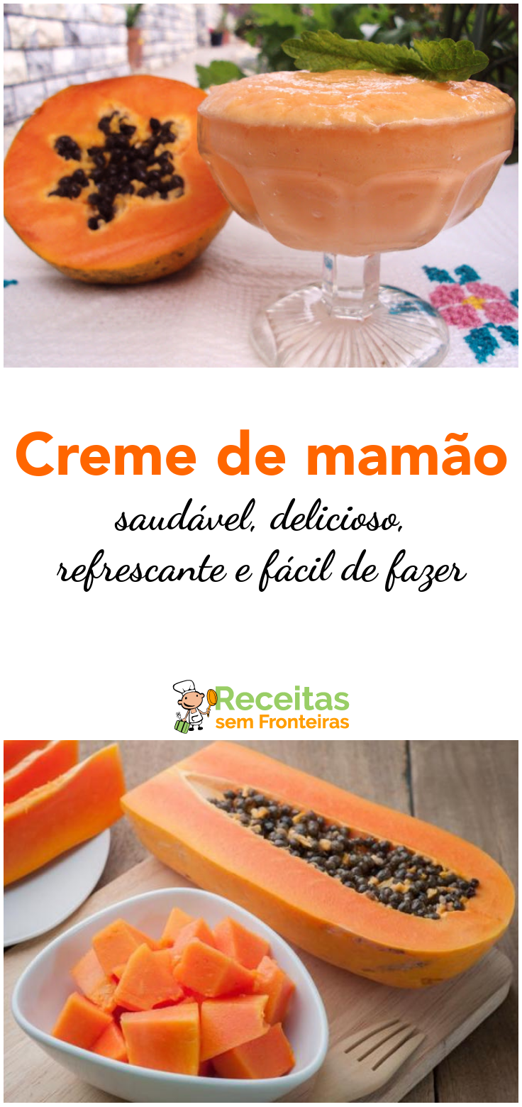 Descasque e pique o mamão, coloque no liquidificador e bata com os outros ingredientes.