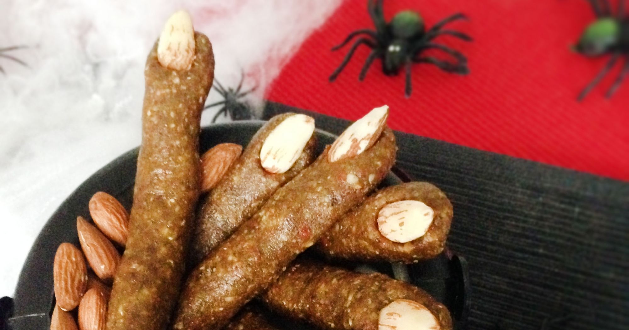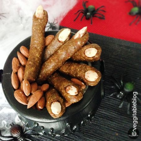 Dividir a massa em tiras, dar forma de dedos e inserir a amêndoa numa das extremidades.