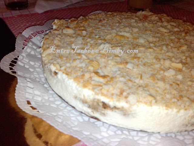 Numa forma de aro amovível, cobrir o fundo com bolacha demolhada no café, e verter um pedaço do creme, colocar novamente outra camada de bolacha e outra de creme, assim sucessivamente, acabando sempre com uma camada de creme. Por fim partir com os dedos, com uma trituradora ou mesmo a bimby com uns toques de turbo, as bolachas que sobrarem e polvilhar por cima do creme.
